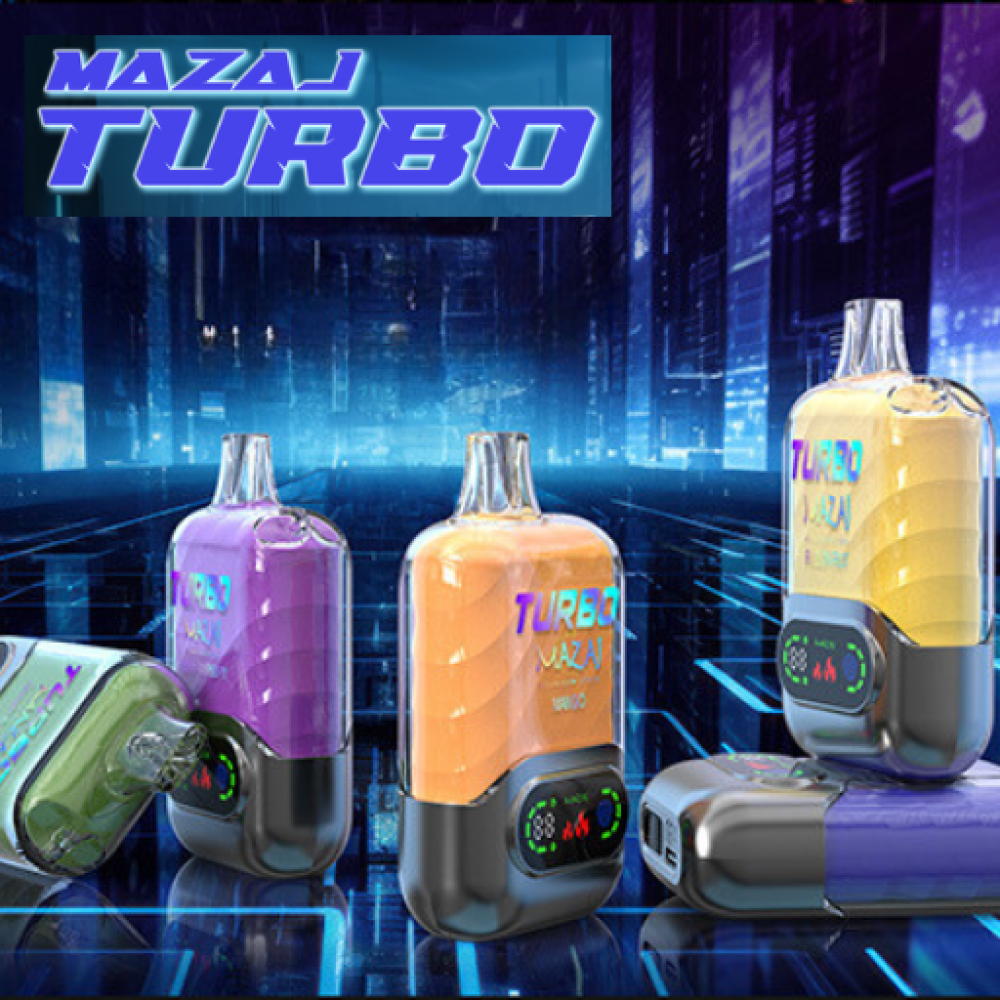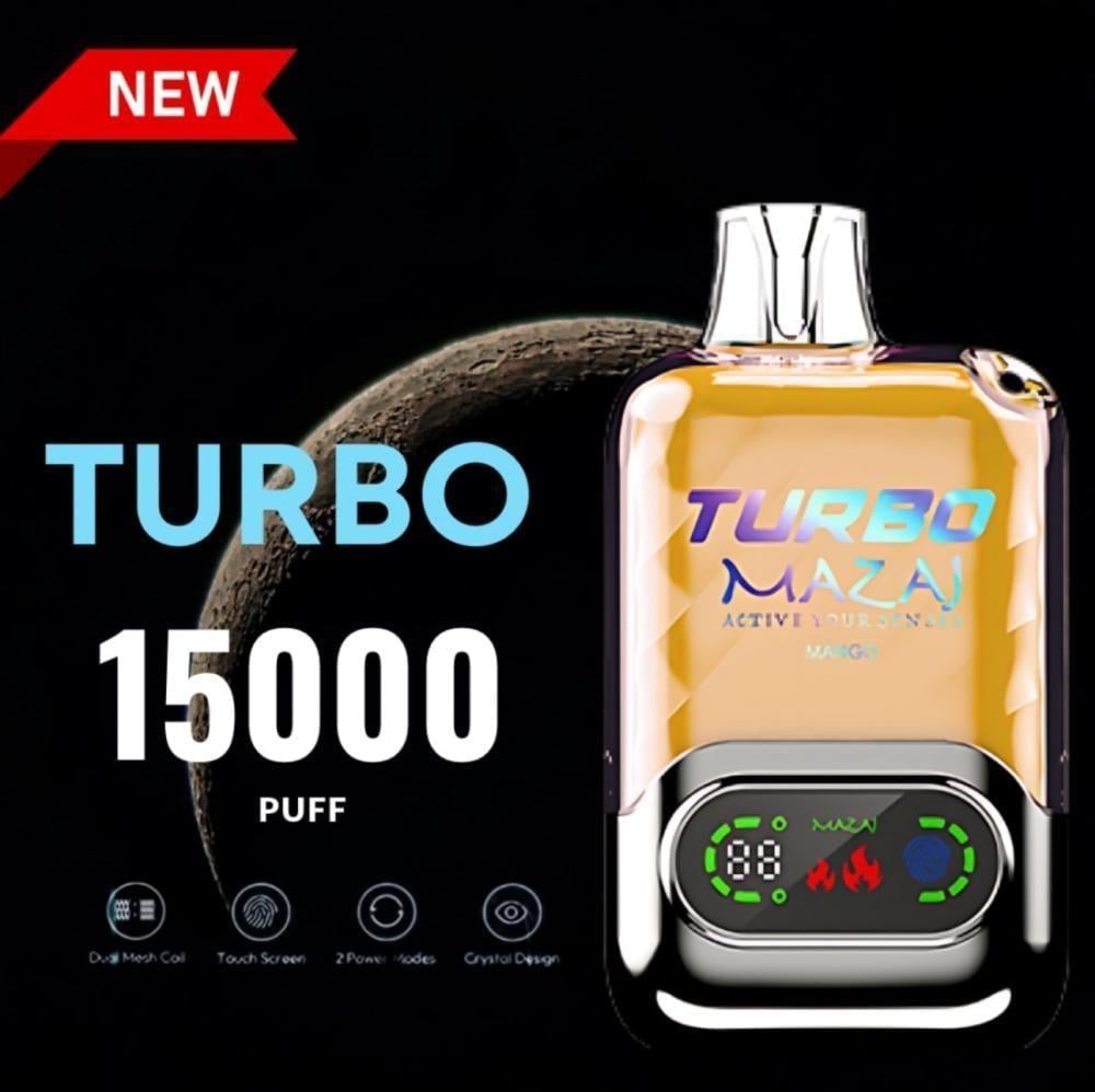 نقدم لكم سحبه مزاج تيربو 15000 سحبة Mazaj Turbo 15000 Puff بطارية 850 ملي امبير و 22 مل من النكهة و نظام تحكم تتش و شاشة عرض ذكية و نظام تحكم بالاير فلو و خيارات نيكوتين 20 و 50 مج